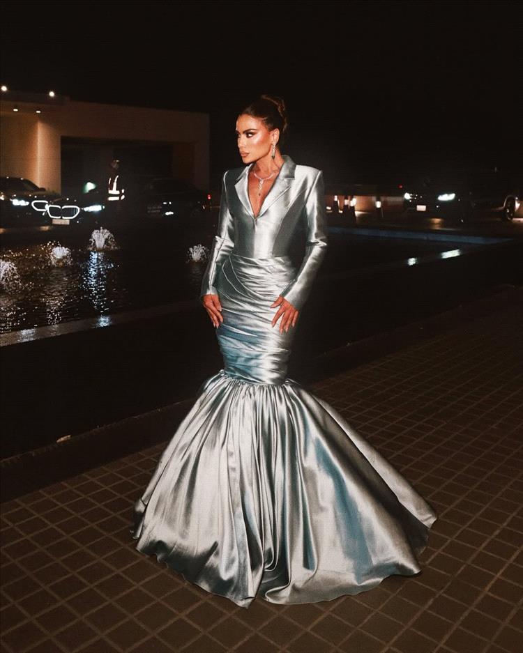 الفساتين الطويلة بقصة حورية البحر كانت من الخيارات التي أكدت على أنوثة صبا مبارك، حيث تعانق هذه القصّة الجسم وتبرز منحنياته بأسلوب أنيق ومترف، ما يجعلها مثالية للمناسبات الراقية.