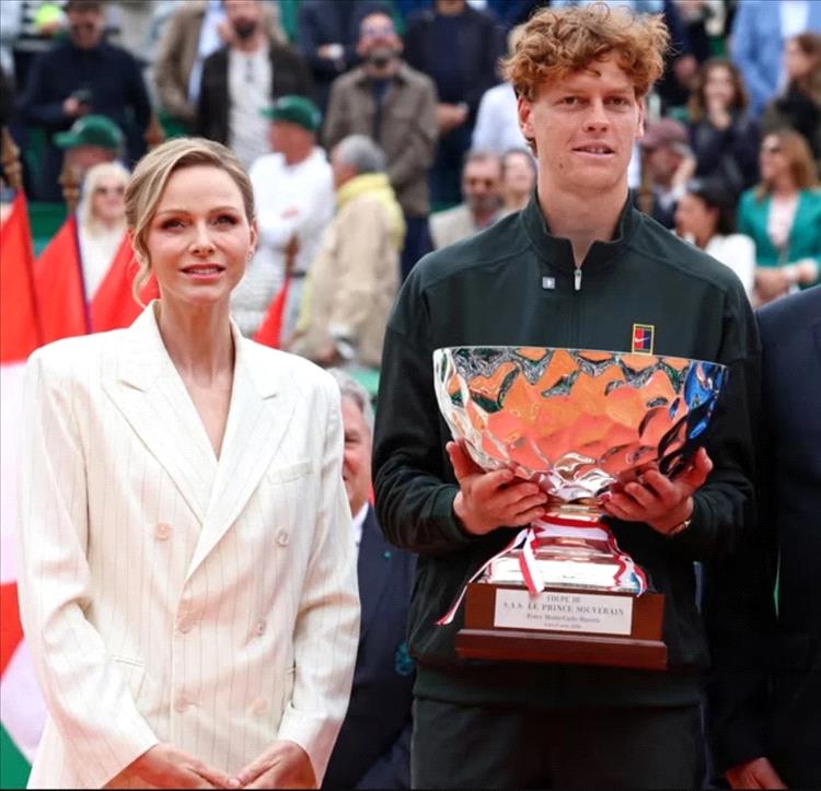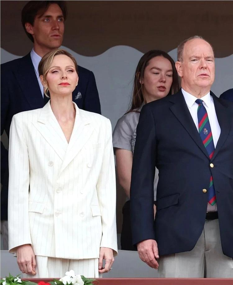 حضر الأمير ألبرت والأميرة شارلين المباراة النهائية لبطولة مونت كارلو للماسترز للتنس بين الإسباني كارلوس ألكاراز والإيطالي يانيك سينر، وتألقت بإطلالة كلاسيكية أنيقة.